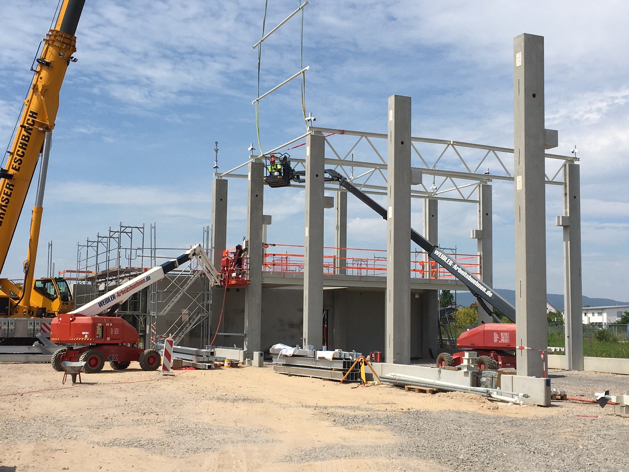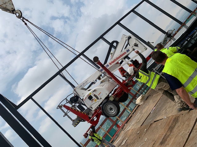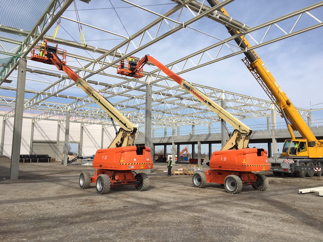 Bei den Stahlbauprofis trifft das doppelt und dreifach zu: erstens bei Faktor Mensch & Maschine und zweitens bei der Kombination von Kran & Arbeitsbühne.