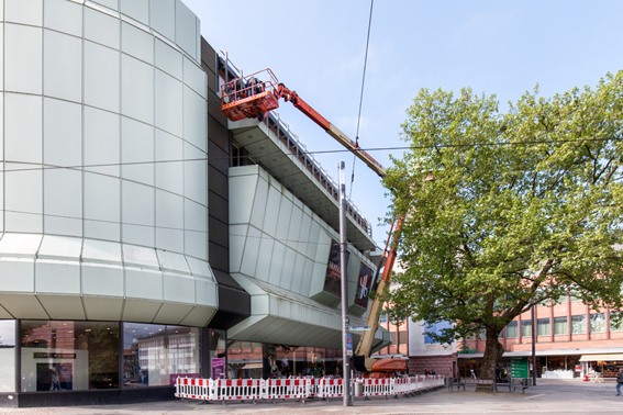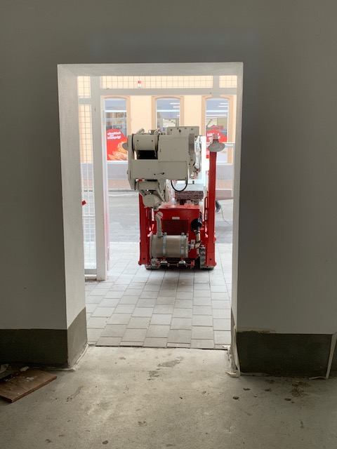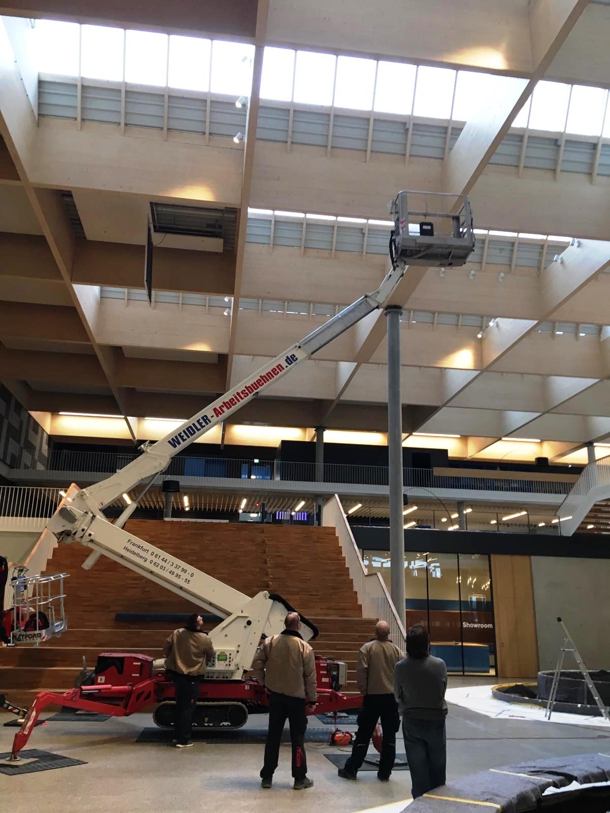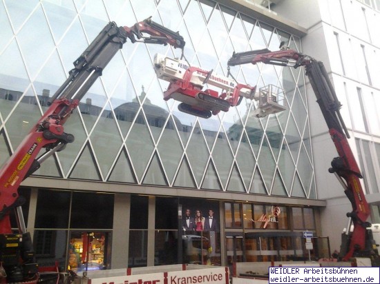 Dank der geringen Transportbreite von 1,58 m, konnte der RT 300H problemlos per Kran zum Einsatzort in den oberen Etagen der Zeilgalerie transportiert werden.