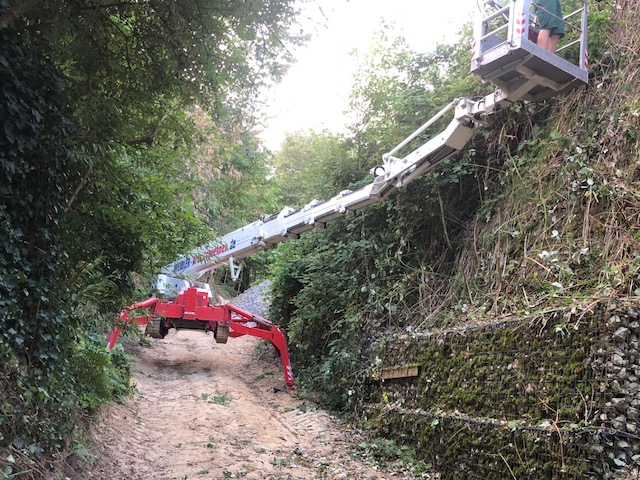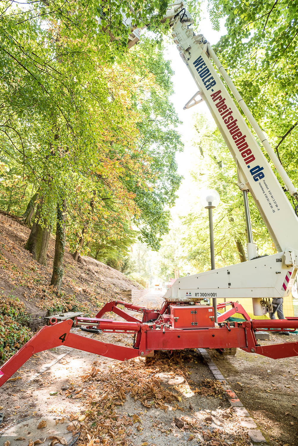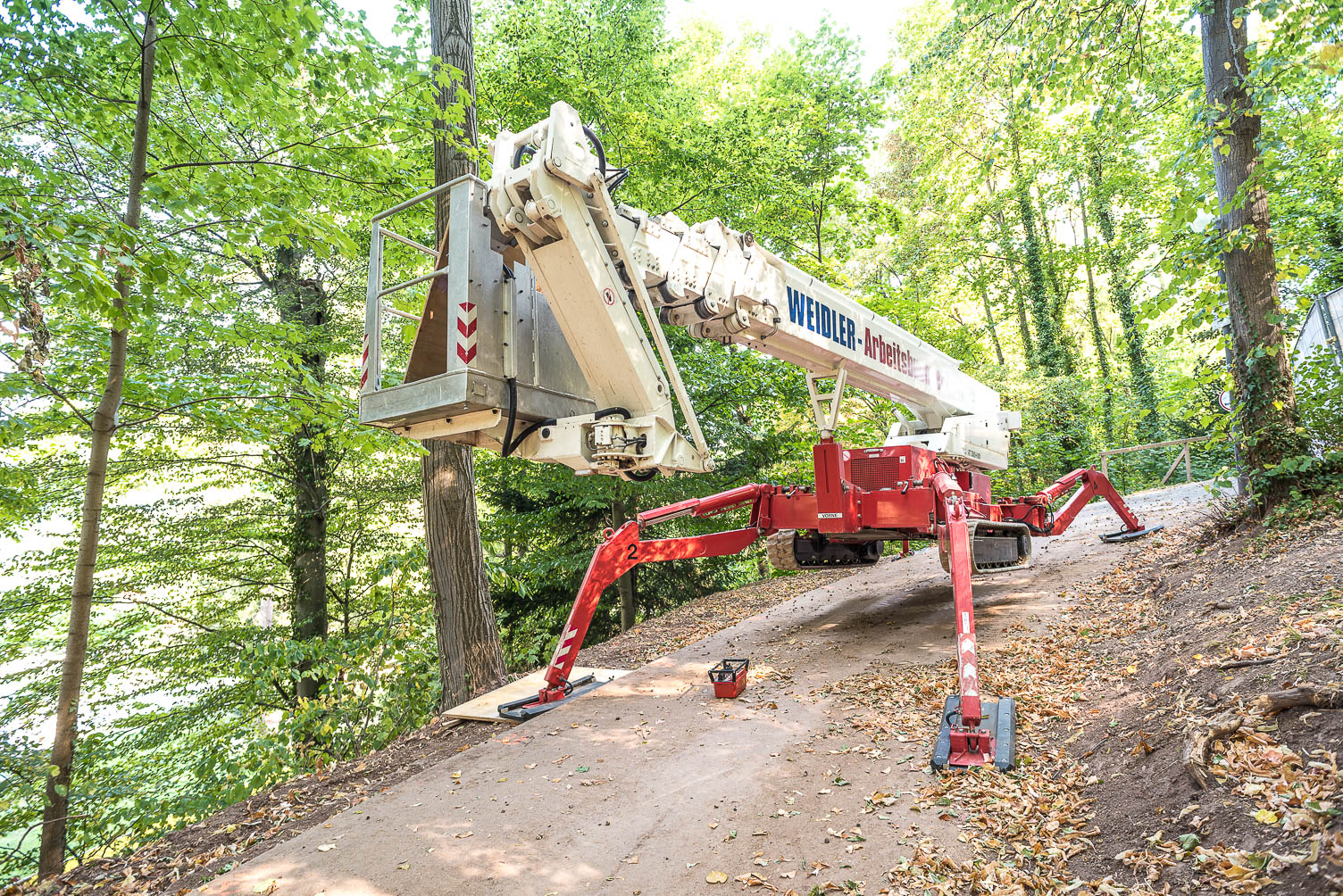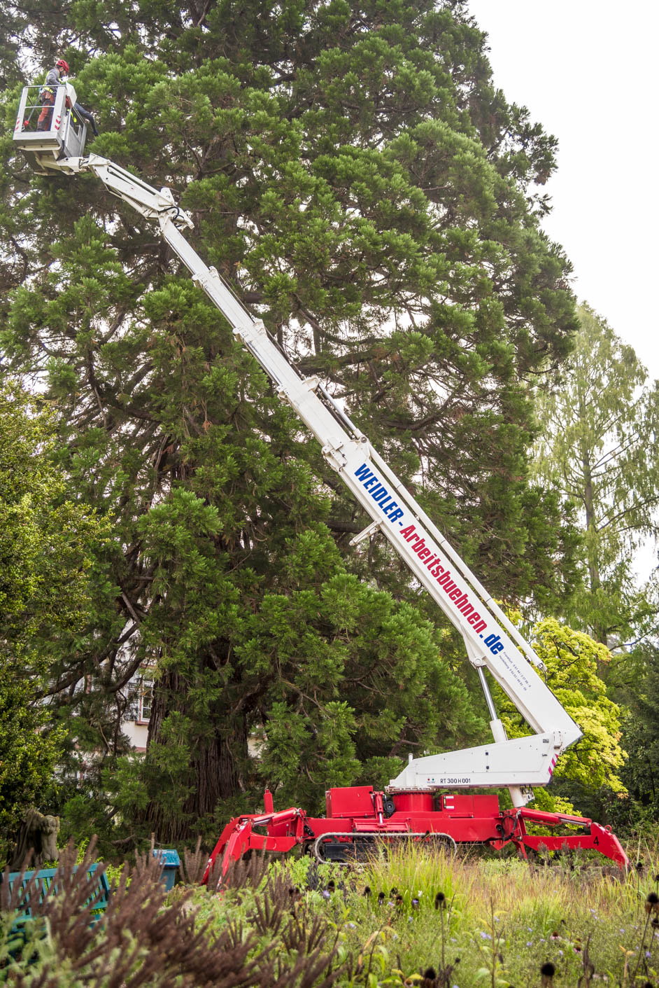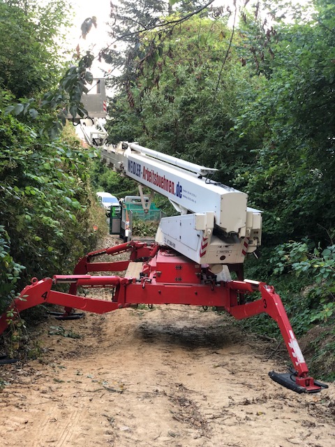 Mit unserem Raupenteleskop (RT 300H) von einer Arbeitshöhe bis zu 30 m und einer seitlichen Reichweite mit 15,70 m, waren die Grünschnittarbeiten schnell, sicher und effektiv erledigt.