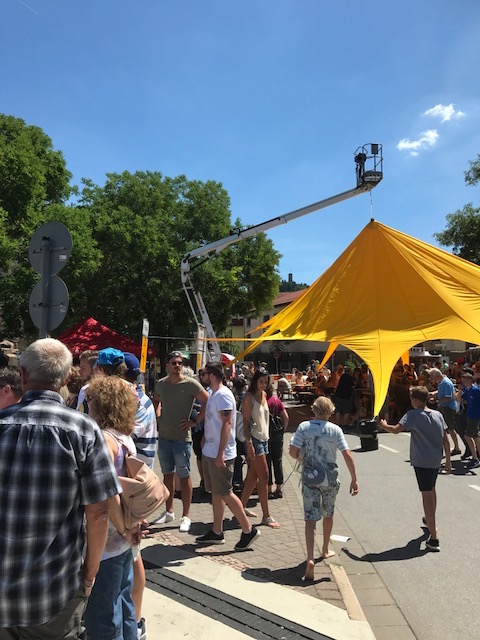 Die Firma Weidler-Arbeitsbühnen sorgt bei der Charity Veranstaltung des Weinheimer Lady Circle für ein schattenspendendes Ambiente