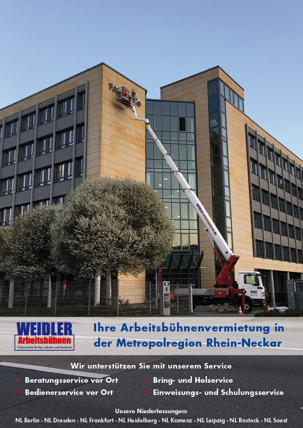 Dieses Jahr wird Weidler Arbeitsbühnenvermietung sein Leistungsspektrum auf dem Maimarkt in Mannheim präsentieren. Besuchen Sie unseren Stand vom 28. April bis zum 8. Mai. Wir freuen uns auf Sie.