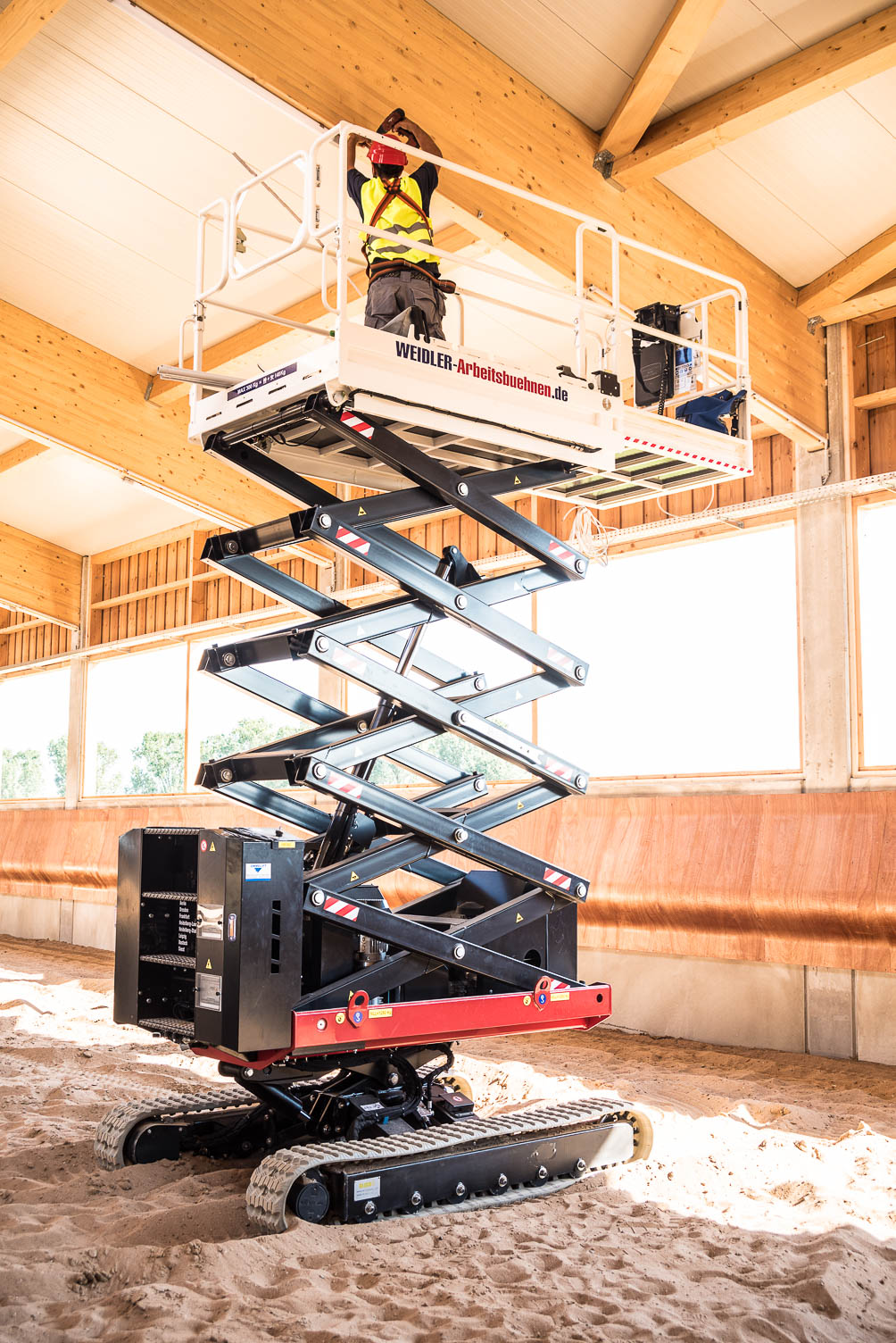 Die Elektroscheren bieten Ihnen Sicherheit und effizientes Arbeiten. Durch die spurenfreie Bereifung, den hochleistungsfähigen Akku-Elektroantrieb und das geringe Eigengewicht sind die Elektroscheren ideal für Ihre Arbeiten im Innenausbau an Wand und Decke. Die Plattform bietet Ihnen ausreichend Platz für Personen, Material und Werkzeug. Je nach Bühnenmodell können Sie die Plattform ausziehen oder in voller Höhe verfahren. Auch die hohe Tragfähigkeit unserer Elektroscheren unterstützt Sie ideal bei Ihren Arbeiten. Dank der kompakten Bauweise eignen sich unsere Elektroscheren perfekt für beengte Räume. Gerne beraten wir Sie persönlich und erstellen Ihnen ein Angebot. Viele Grüße ihr Weidlerteam