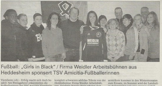 Am 22.02.2013 war es endlich soweit. Herr Marc Weidler überreichte den Spielerinnen des TSV Amicita Ihre neuen Trikots. Das gesamte Team freute und bedankte sich.