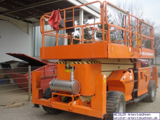 Unsere Scheren-Arbeitsbühne (Diesel) mit 24 m Arbeitshöhe ist bestens geeignet für alle Arbeiten an der Fassade.