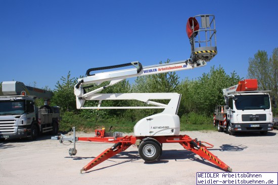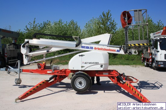 Dank des teleskopierbaren oberen Auslegers ist eine größere Genauigkeit beim Positionieren der Plattform gegeben und durch die hydraulische Abstützung kann die AGT 145HS schnell und einfach abgestützt werden. Weiterhin überzeugt sie durch Ihre 1,4 m breite Arbeitsplattform die dem Bediener viel Raum zum Arbeiten gibt. Durch ihren Rangier- und Selbstfahrantrieb kann eine Person die AGT 145HS leicht manövrieren.
