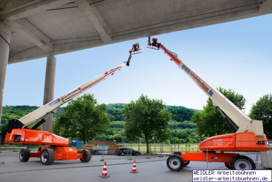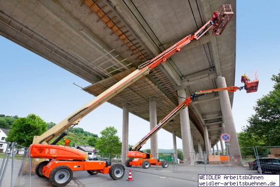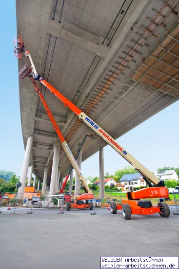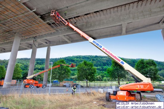 Derzeit sind unsere beiden großen Teleskoparbeitsbühnen T 430ADG und T 475ADG in Sechshelden im Einsatz. Dort werden sie von der Fa. C.O. Weise GmbH & Co.KG benötigt, um die Talbrücke Notinstand zu setzen.